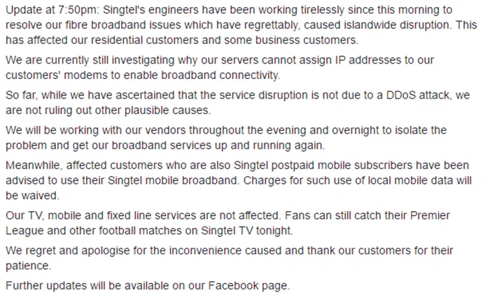 "Singtel advised customers to rely on their mobile data which they would waive for that day.