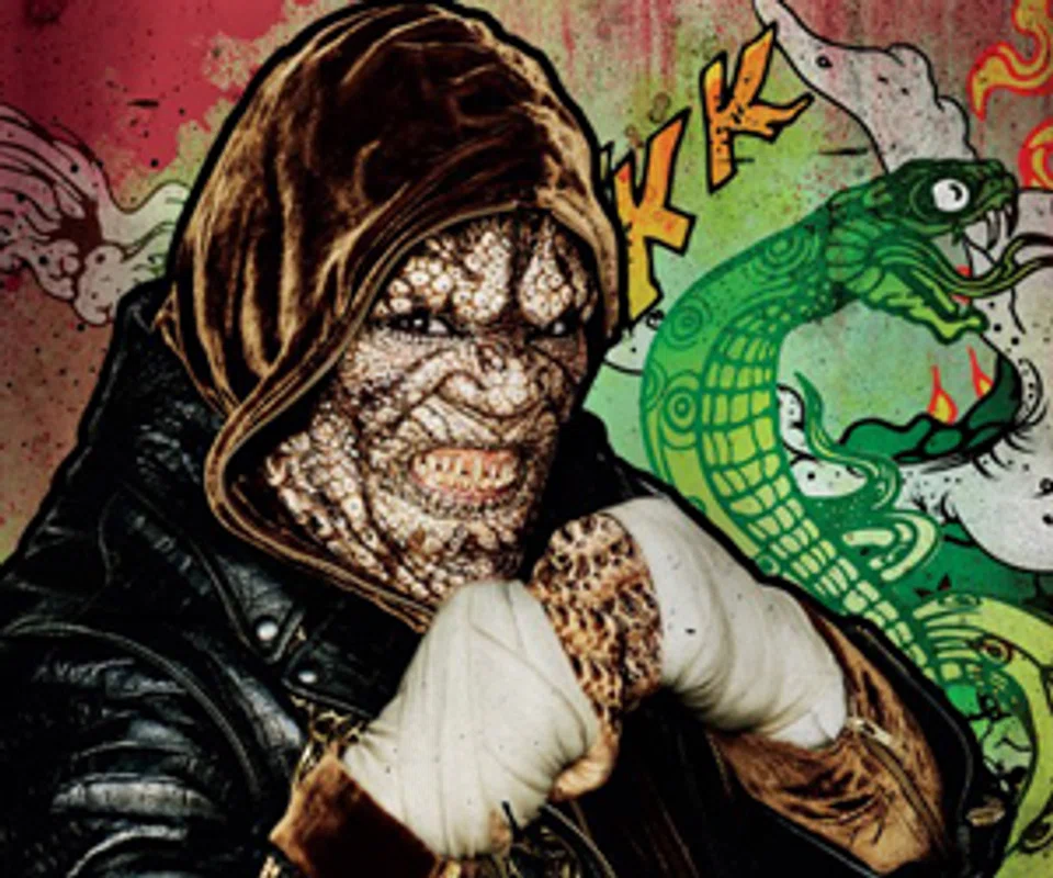 A huge man for whom evolution is working backward, Killer Croc's square jaw, cracked and scaly skin and toothy grin evoke the most fearsome of reptiles, but it's his skill at surviving and maneuvering in dark, dank, filthy sewers that makes him a deadly foe when he's in his element.