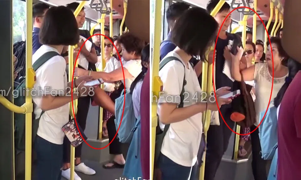 Who's in the wrong? Old lady and young man argue on SBS bus -- kicking and spitting at each other