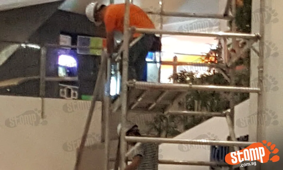 Despite the work being only one-floor up, this may pose a safety hazard to the construction workers themselves and even other shoppers at Nex.