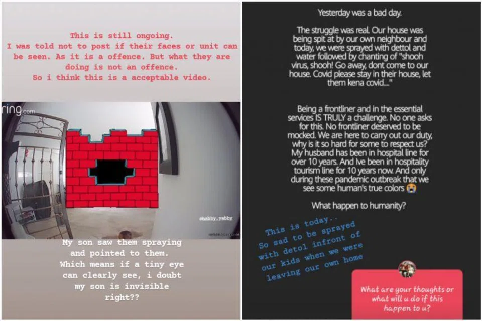 Cheang Eng Hock and Lim Sok Lay had targeted their neighbours with acts such as shouting phrases including "Covid spreader" and "virus family". PHOTOS: SCREENGRABS FROM JIBBY4G/INSTAGRAM
