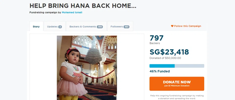 Throughout the years, the family has exhausted most of their finances and avenues in funding this prolonged battle so they started a crowdfunding page to raise awareness and funds to bring Hana home.