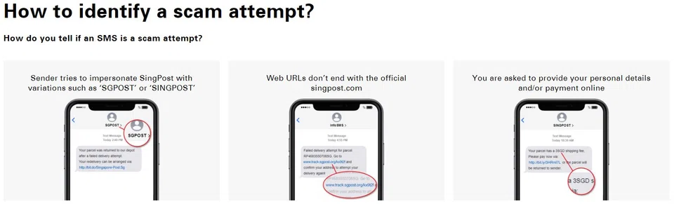 On its website, SingPost warns of scammers using SMS disguised as delivery notifications to target SingPost customers by tricking them into accessing fake websites to make payments or to provide sensitive personal information.
