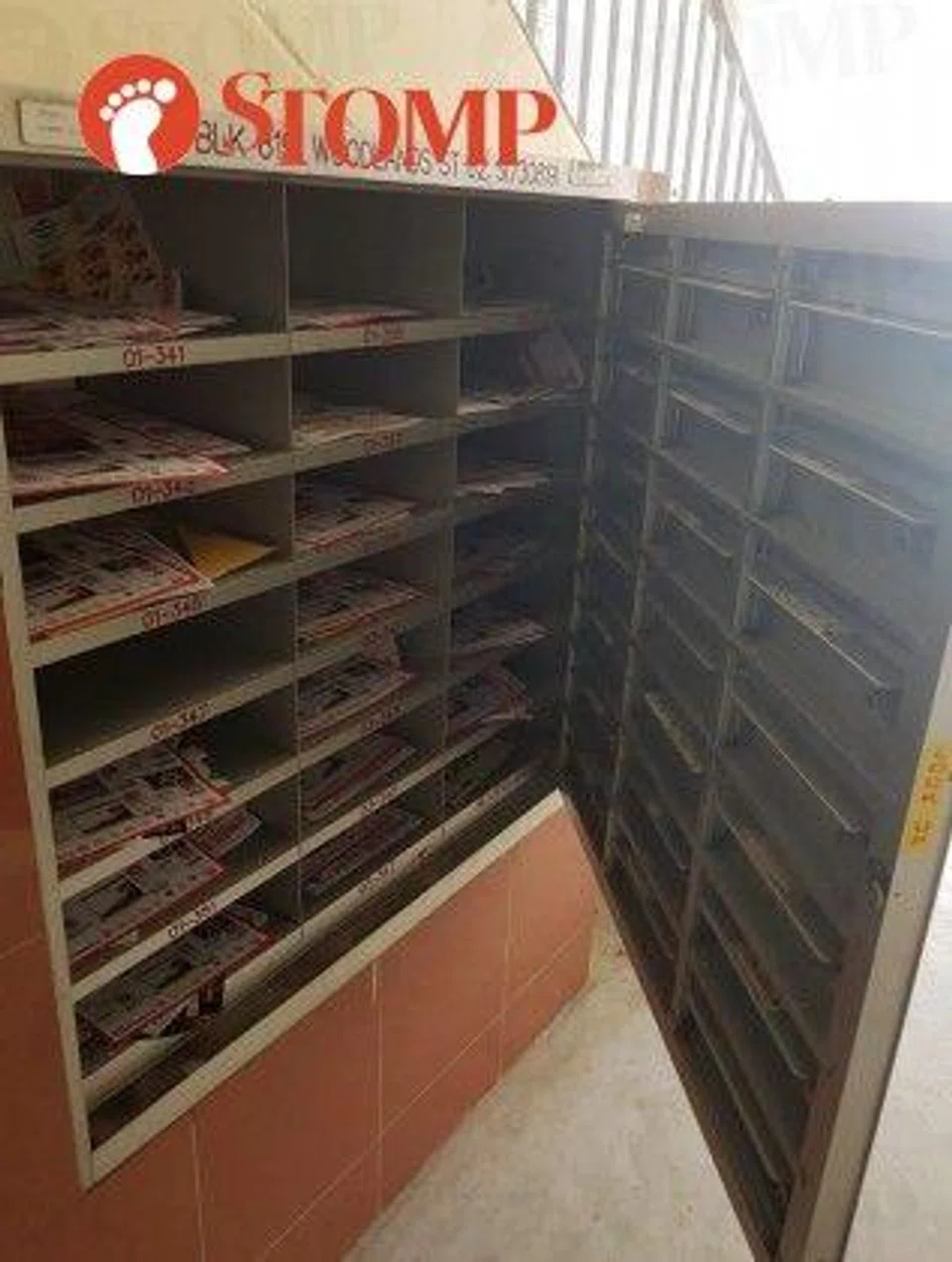 Stomper Julie who stays at Block 819 Woodlands Street 82 told Stomp that she and her husband were going for lunch at about 12pm on Saturday (June 2) when they came across an unlocked masterdoor to a mailbox panel.