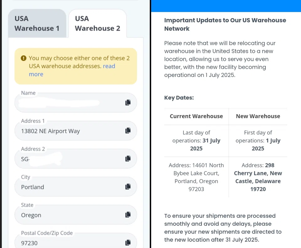 T told Stomp: "Their website notice about the USA warehouse change was wrong as the obsoleted address is not correctly reflected. If the Warehouse 2 address is closed, they need to remove it from users' accounts."