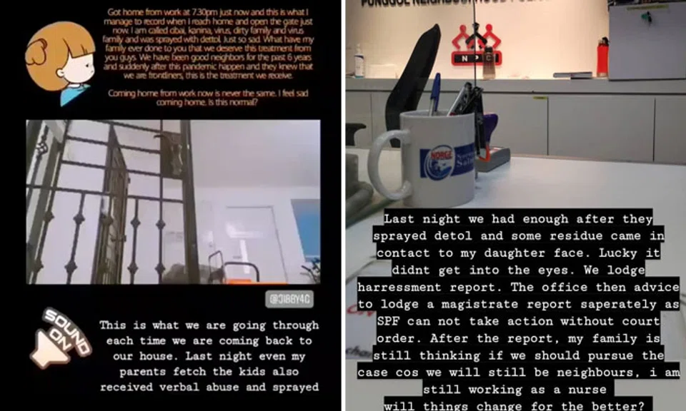 The police are investigating a case regarding a Sengkang General Hospital (SKH) nurse who has been enduring harassment from his next-door neighbours, including mocking and being sprayed with disinfectant.