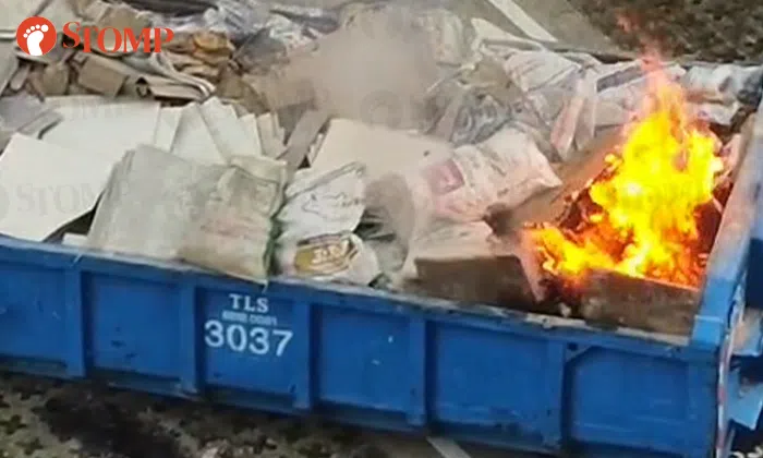 The fire involved the contents of a skip bin," an SCDF spokesperson said. "SCDF extinguished the fire using a hose reel."