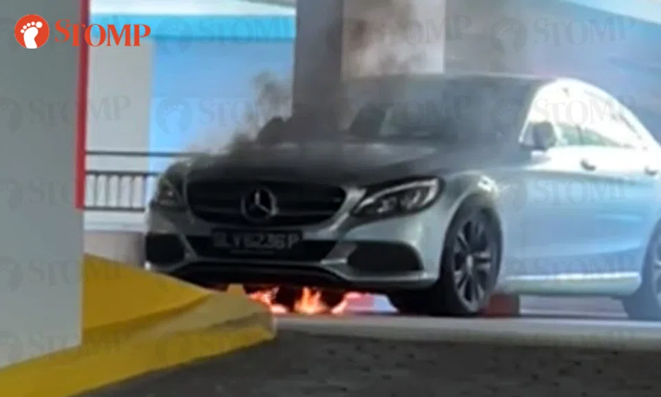 The Singapore Civil Defence Force (SCDF) told Stomp it was alerted to the fire, which involved the car's engine compartment, at around 6pm.