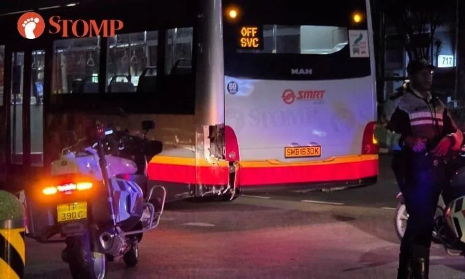 SMRT bus damaged in accident near Admiralty MRT station, driver assisting with police investigations