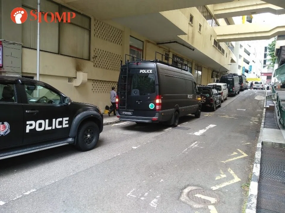 Stomper Sabre Cruz shared photos of the police presence outside Peace Centre taken at around noon by a friend who was in the area to buy 4D.