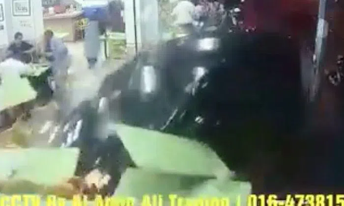 A video of a black car ramming into a crowded Penang restaurant has been circulating on Facebook.
