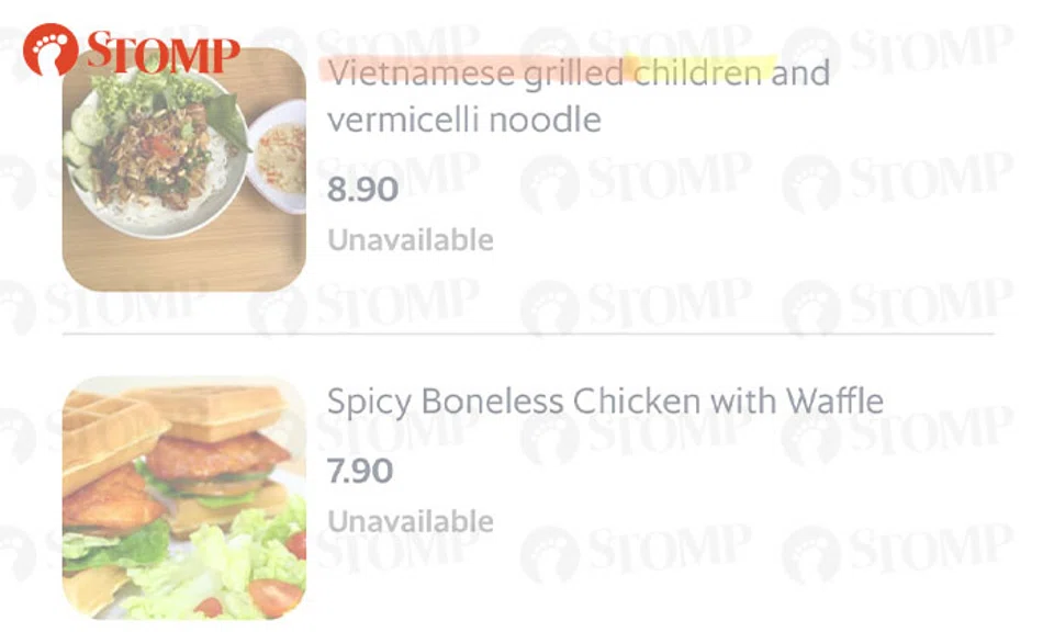 Stomper JC was tickled when he encountered a typo on the Grab app while browsing for food to order from Yup Sweet and Savoury in Jurong.