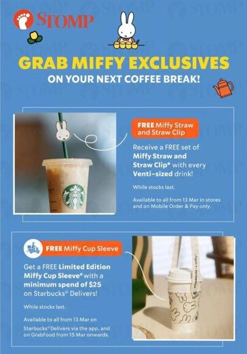 Fans could also get exclusive deals such as a free Miffy Straw + Straw Clip and a Miffy cup sleeve with purchase.
