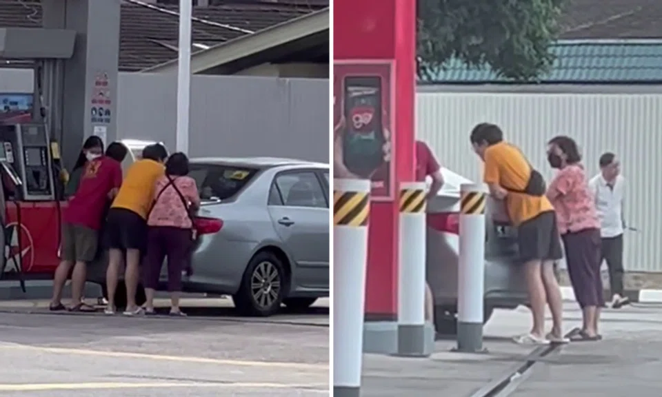 S'pore family bounces car up and down while pumping petrol in JB: 'Even auntie is working hard'