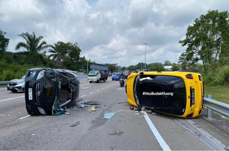 A picture of the aftermath posted on Twitter by Ms Nuraini on Saturday showed the two cars lying on their sides, with glass and debris on the road.