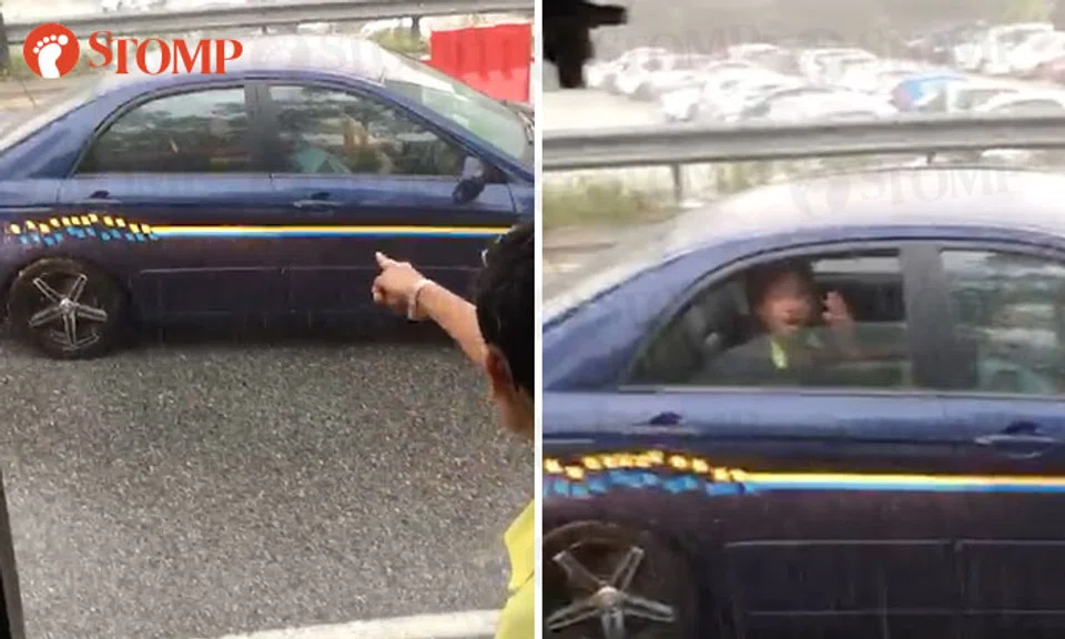 An argument broke out between a driver of a Singapore-registered car and a public bus driver in Johor Bahru, after the former allegedly refused to give way to allow space for the bus to change lanes.