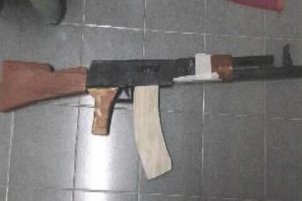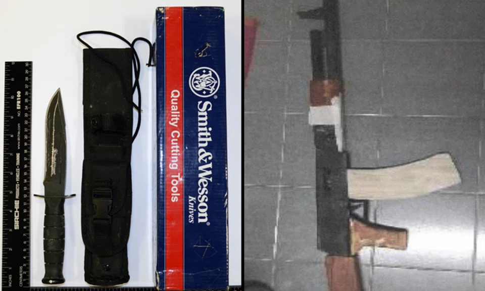 Amirull made a replica of an AK-47 assault rifle and practised handling it. PHOTO: INTERNAL SECURITY DEPARTMENT