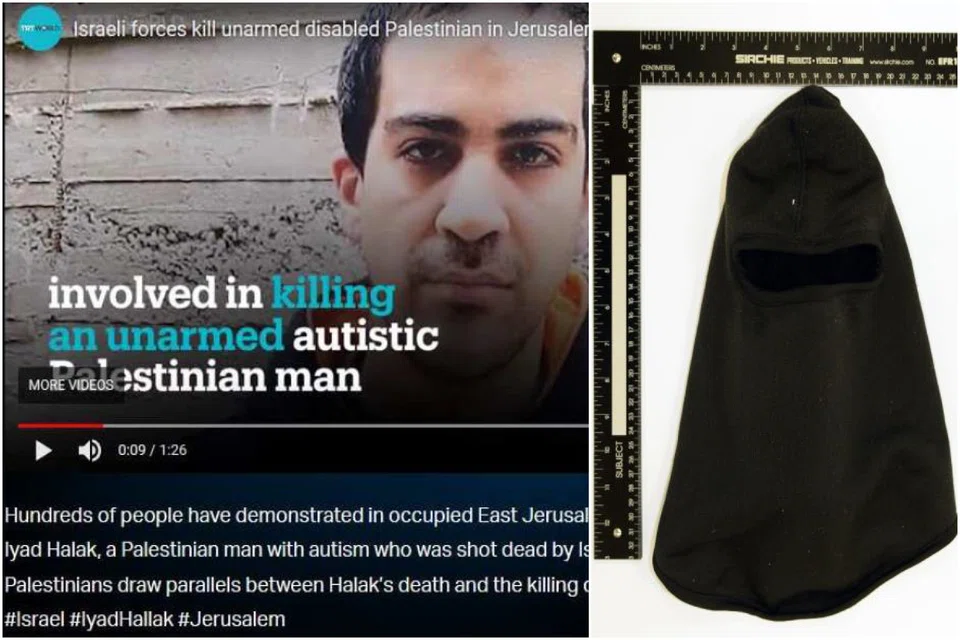 Amirull Ali became enraged by a video about the killing of an unarmed autistic Palestinian man (left). He planned to wear a black ski mask that he had bought in March 2020. PHOTOS: INTERNAL SECURITY DEPARTMENT