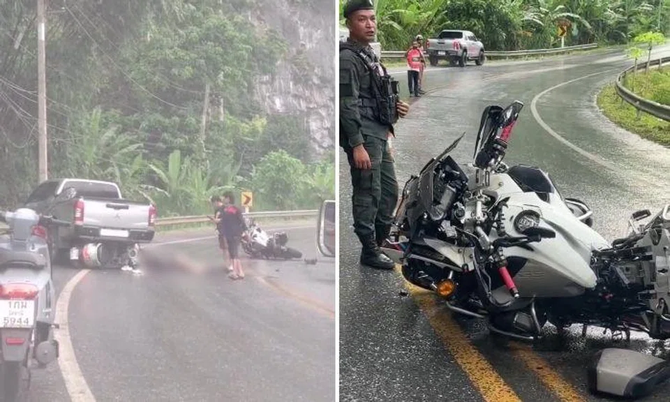 S'porean motorcyclist dies after skidding on Thai highway and colliding with pickup truck