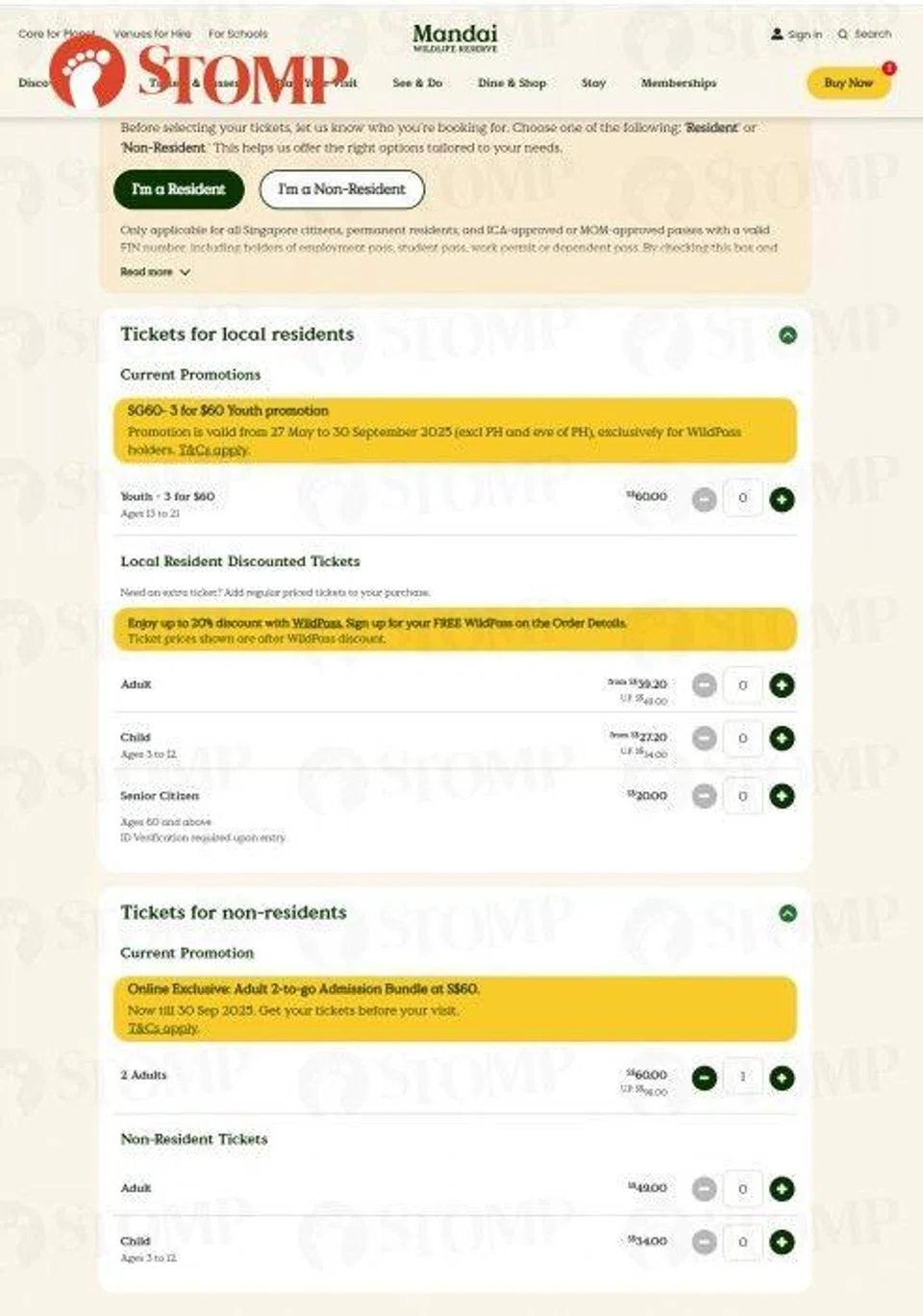 The Stomper made the discovery while reviewing the pricing information on the Mandai Wildlife Reserve website.