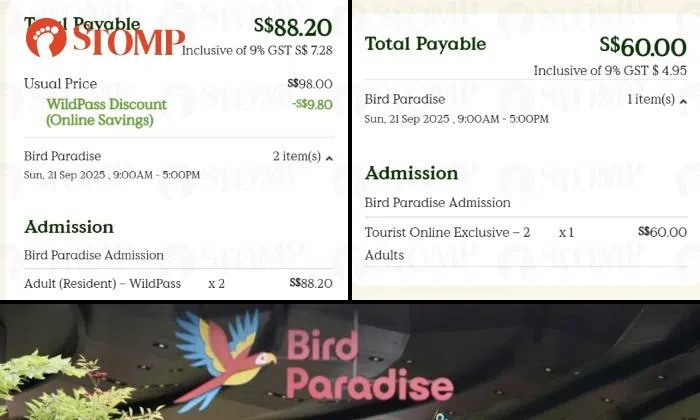 S'porean surprised he's paying more than tourists for Bird Paradise admission