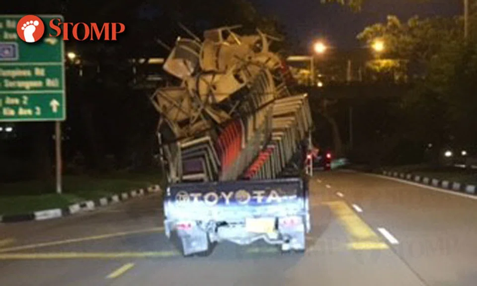 Stomper Eswaren was concerned when he saw a lorry loaded with stacks of chairs travelling along Hougang Ave 3 on Jun 7.
