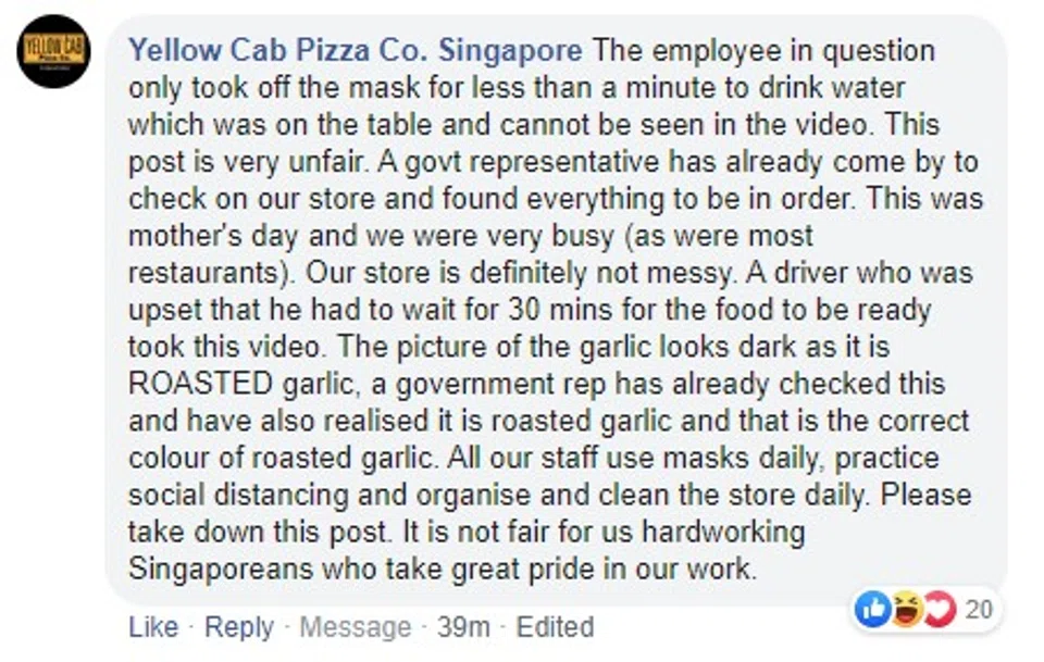 While the restaurant has not replied Stomp's email at the time of writing, it has responded on Stomp's Facebook post.