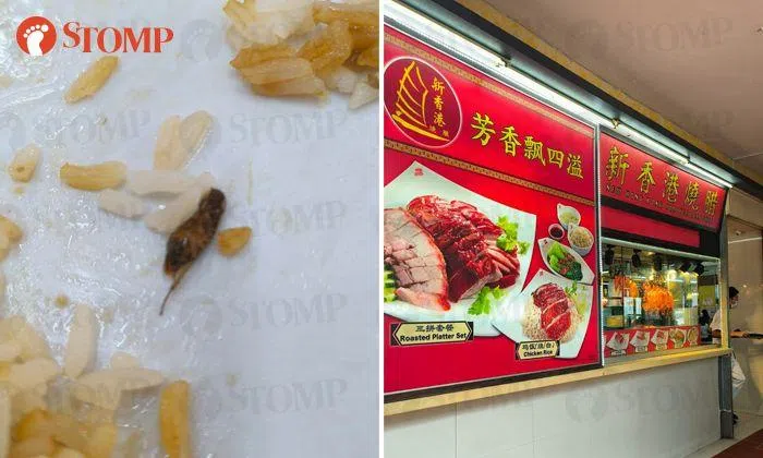 A diner was appalled to find a dead cockroach in her chicken rice from a coffee shop stall in Ang Mo Kio.