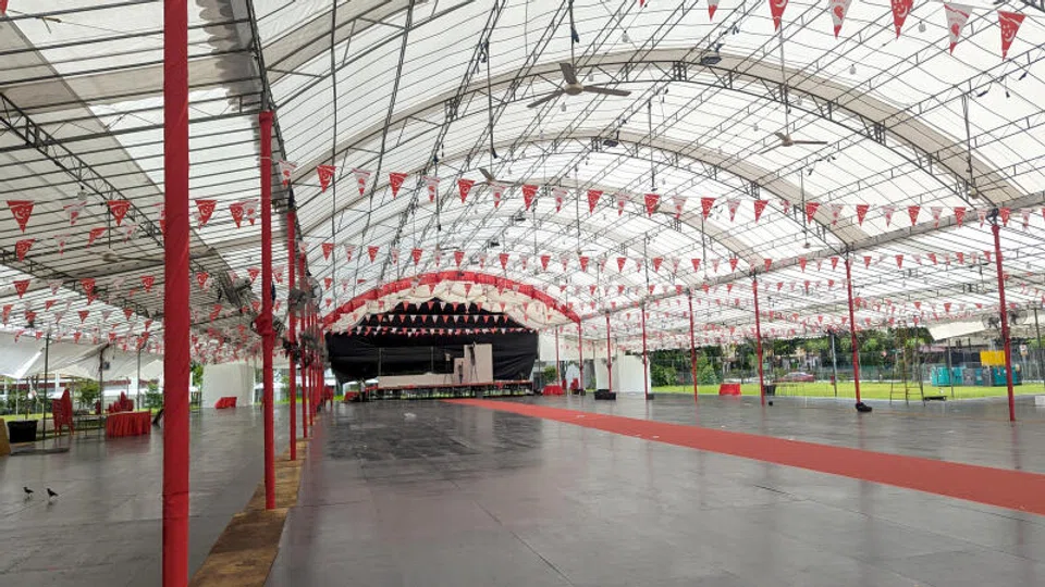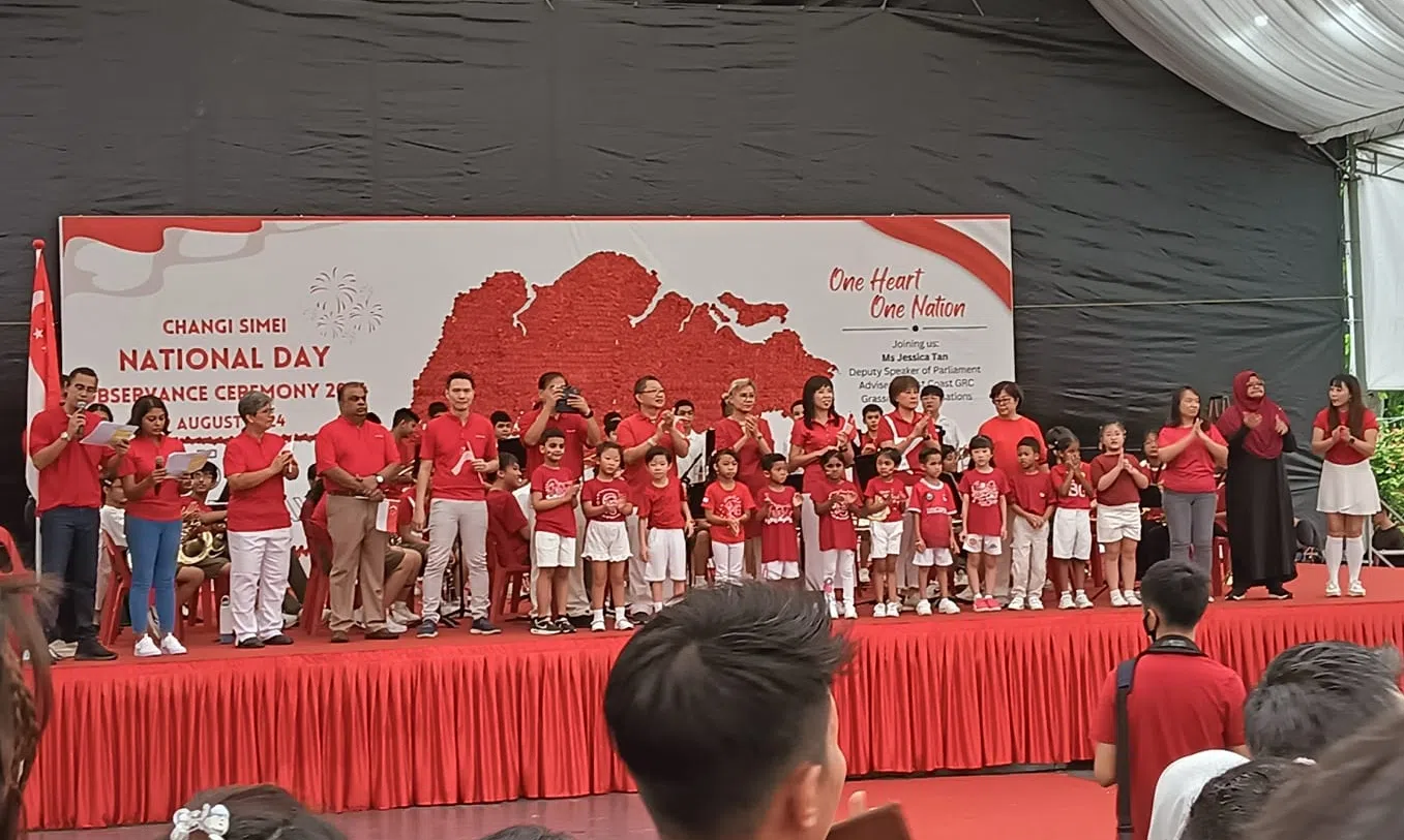 The National Day Observance Ceremony for Ms Tan's Changi Simei ward was held from 8.30am to 11.30am in an open field next to Eastpoint Mall, and included games and band performances.