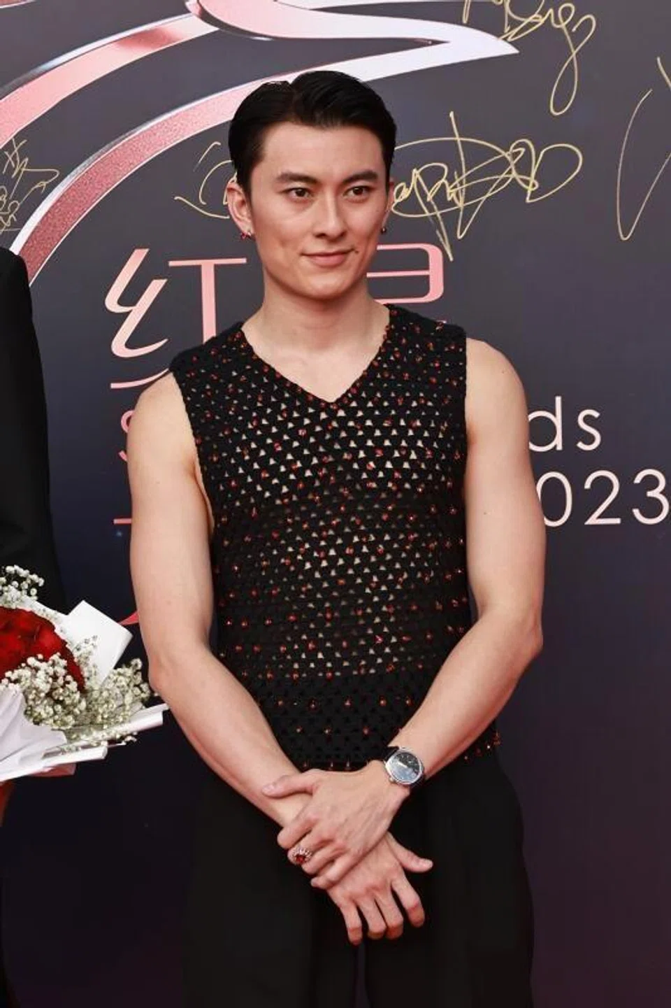A see-through singlet at the Star Awards? We are still on the fence whether such under-dressing was an act of bravura, or happy hour started early. Then again, given how his peers were melting in the heat in their three-piece suits, can you blame him? Goh actually handmade this black crochet vest embellished with red beads. Considering how “crafty” he is, upcycling is likely in the near future for this history-making apparel.