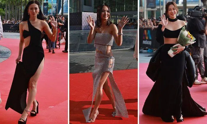 This poor celebrity made it to the red carpet despite being attacked by a wild animal en route. Ng may have emerged in one piece, but we cannot say the same for her raggedy silver dress from Denise Chong Adornments, tragically shredded and slashed across the waist, hips and legs. Security measures really need to be improved.