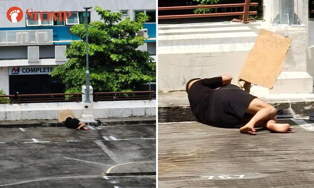 Stomper M, who shared photos with Stomp, said she noticed the man at Block 655 Jurong West Street 61 at about 11.54am.