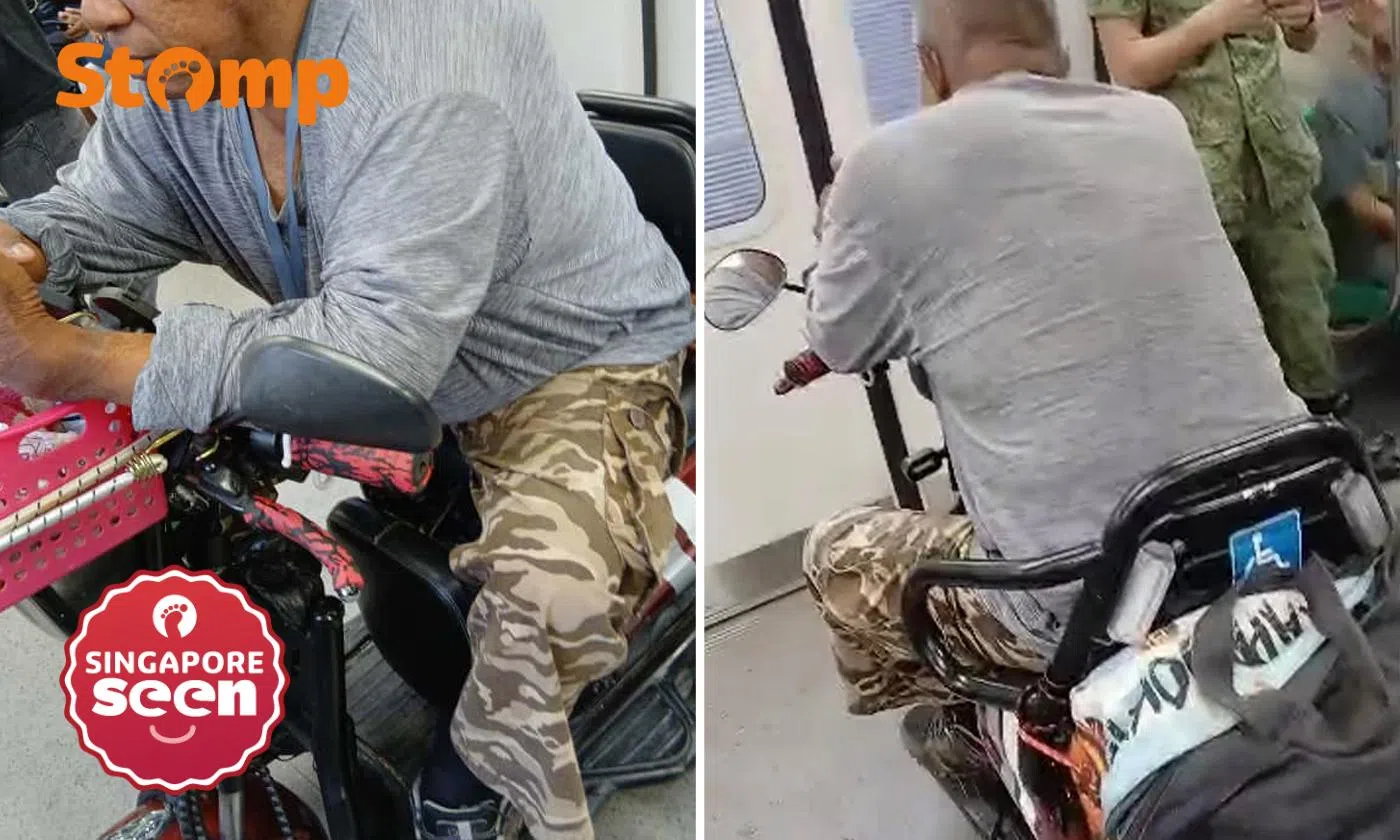 A commuter was recently seen on the MRT with an unusually large personal mobility aid (PMA).
