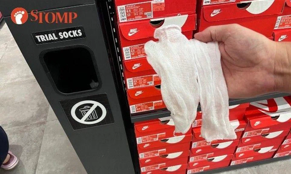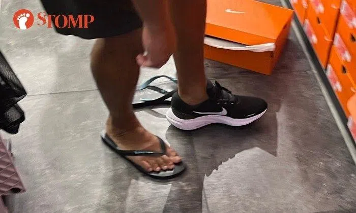 When Stomp visited the Nike Unite store at IMM in Jurong East on Friday (April 14), shoppers wearing sandals or slippers could be seen trying on footwear with their bare feet.