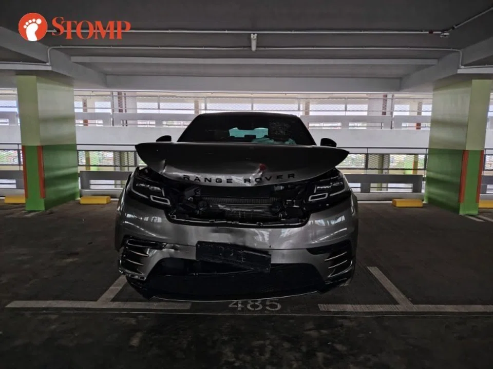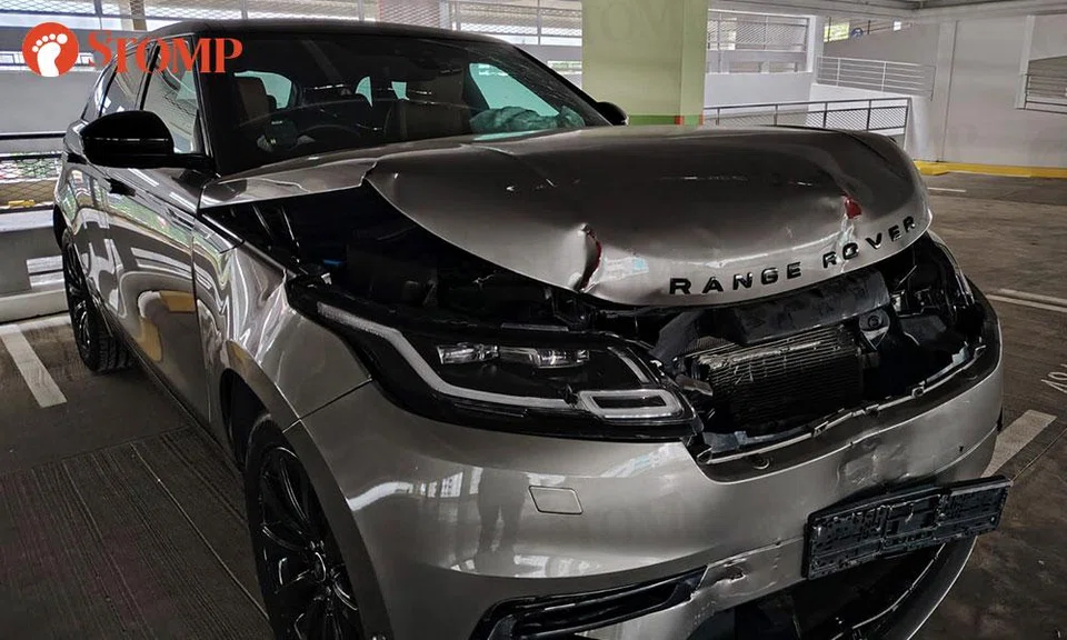 Stomper spots damaged Range Rover with airbags deployed at Fernvale multi-storey carpark
