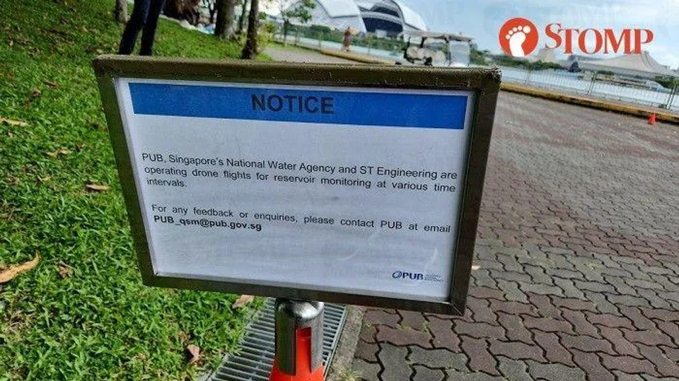 He also shared a photo of a sign that read: "PUB, Singapore's national water agency and ST Engineering are operating drone flights for reservoir monitoring at various time intervals."
