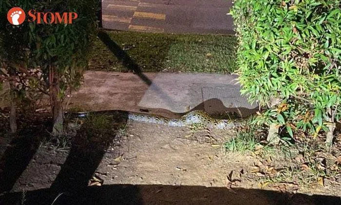 Stomper JD stumbled upon a huge reticulated python at McNair Rd between 11pm to midnight on Mar 29.