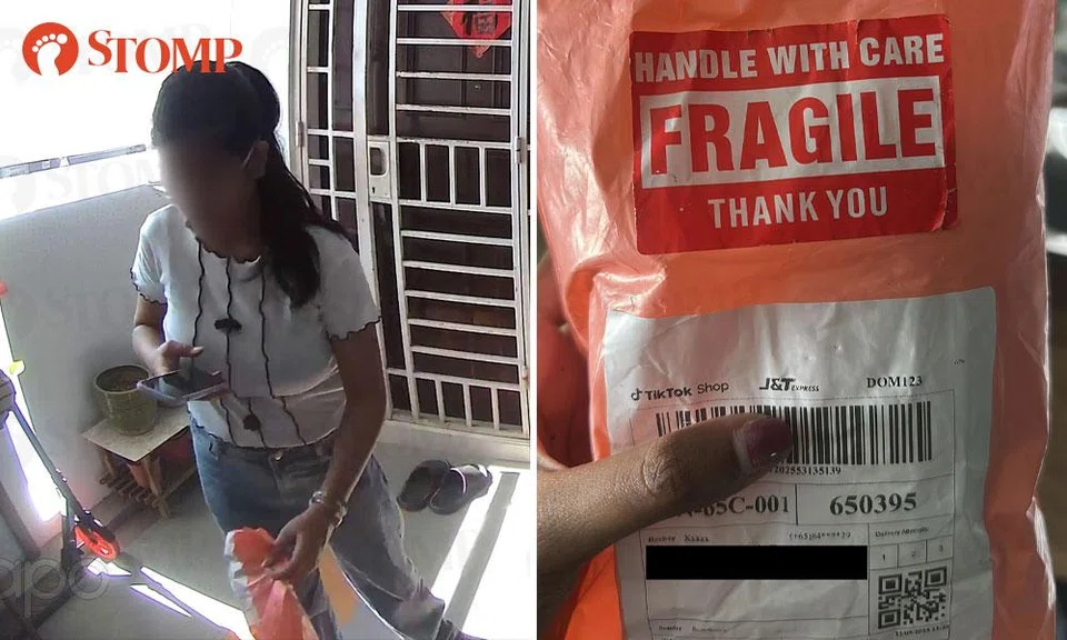 A woman was dismayed after a delivery courier dropped her package in front of her Bukit Batok home, despite it being labelled as fragile.