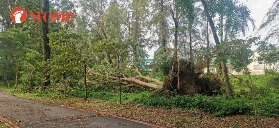 Stomper Yih visited Changi Beach Park on Monday (Apr 17) at 9am and shared with Stomp photos of several fallen and uprooted trees.
