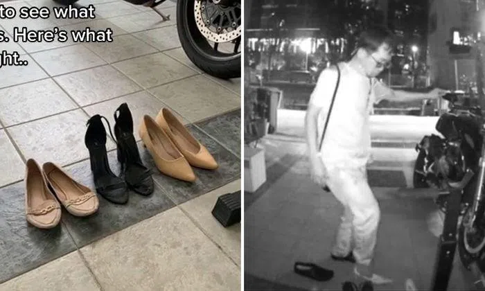 Stranger tries on woman's shoes outside her home, had once left random heels behind