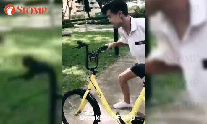 Stomper Erica came across a student abusing an ofo bike near a block of flats in Bishan yesterday (July 25), between 4pm to 5pm.