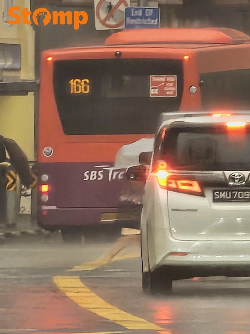The Stomper said he managed to take a photo of bus service 166 travelling towards Ang Mo Kio Bus Interchange but did not manage to capture the licence plate number.