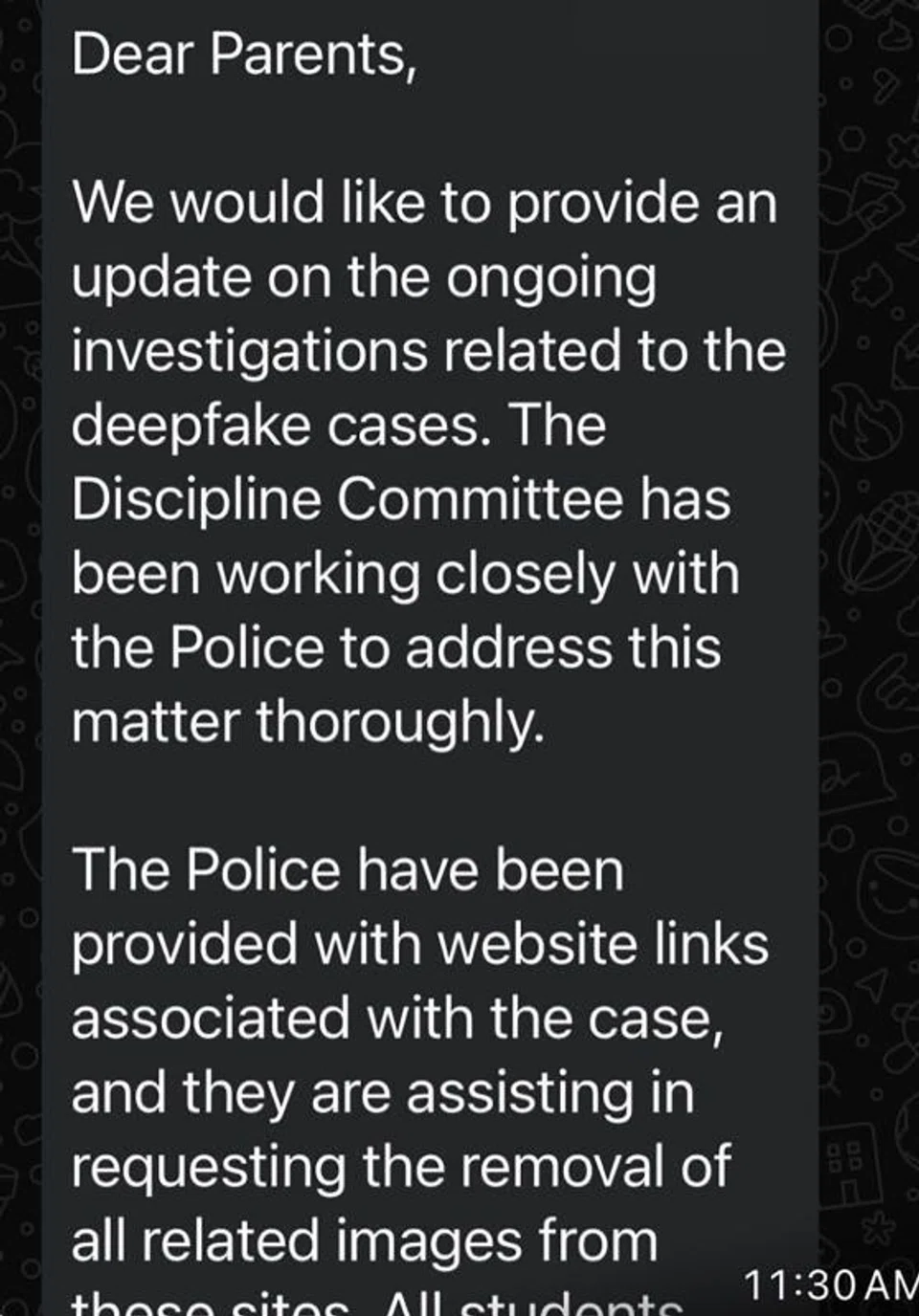 “All students involved are being interviewed by the police, and their mobile devices have been temporarily confiscated for forensic examination,” it said. This is to identify and remove any remaining inappropriate content.