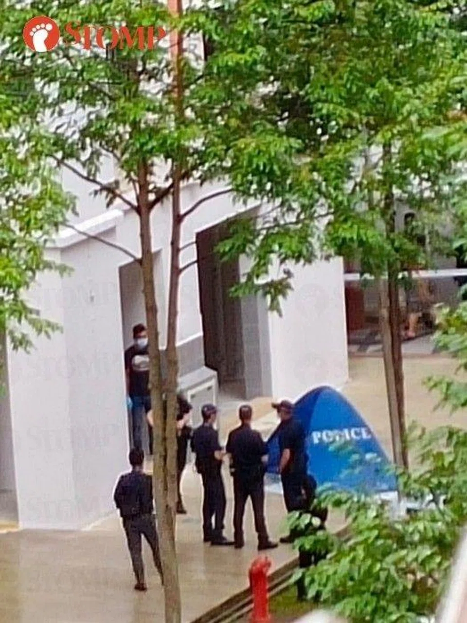 Stomper Anonymous shared photos showing a police tent and officers at the scene.