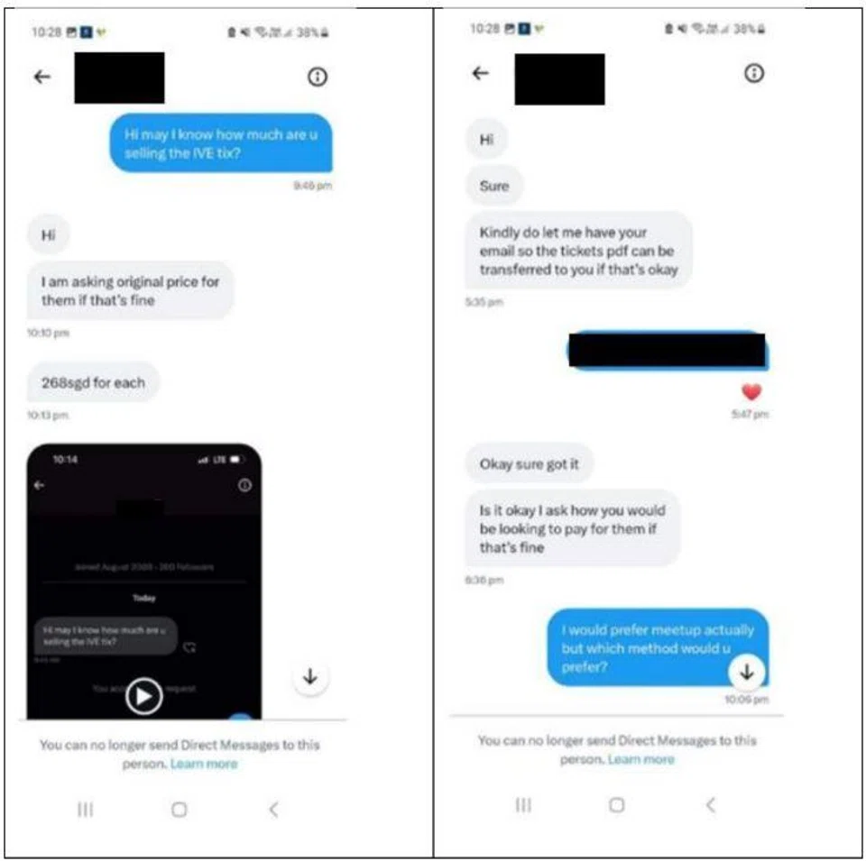 In some cases, the scammers would provide screenshots or videos of fake tickets or receipts to convince the fans that the tickets are authentic. Scammers would also claim that ticket sales were time-sensitive or limited in quantity and promise to deliver the tickets to the fans after successful payment.