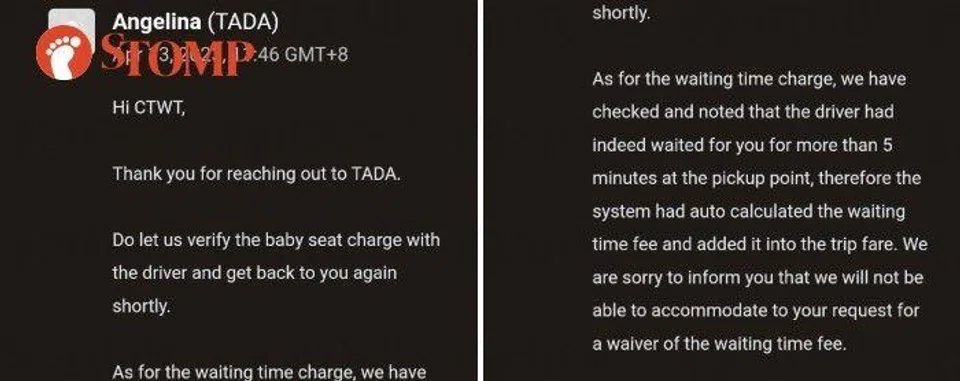 A woman alleged that a driver she booked from ride-hailing service Tada went to the wrong pickup location and charged her a waiting fee.