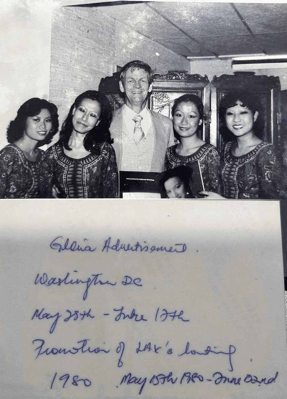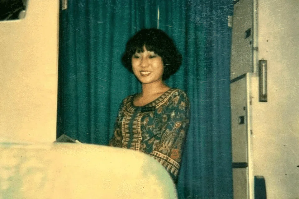 Photos provided to ST show Ms Wang in SIA’s iconic sarong kebaya. Text on the back of one of the photos indicates it was taken in Washington DC around May 1980.