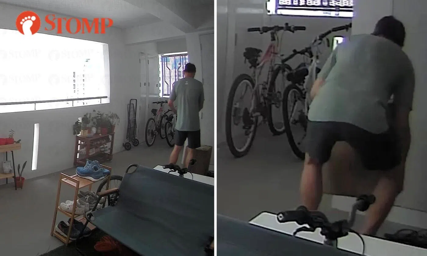 A man was caught on camera taking a parcel from outside a Tampines flat on Oct 5.