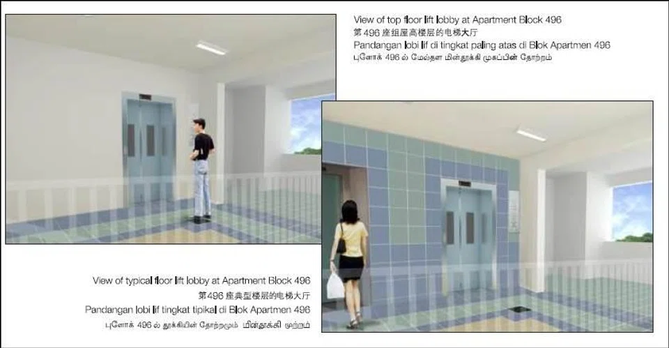 “To keep the costs of lift upgrading low and ensure that the co-payment cost was affordable for the flat owners, only basic finishes for the lift lobby were provided under the LUP at Block 496, similar to all other LUP projects,” said the spokesperson, adding that the design was communicated clearly to residents prior to polling via a brochure and posters.
