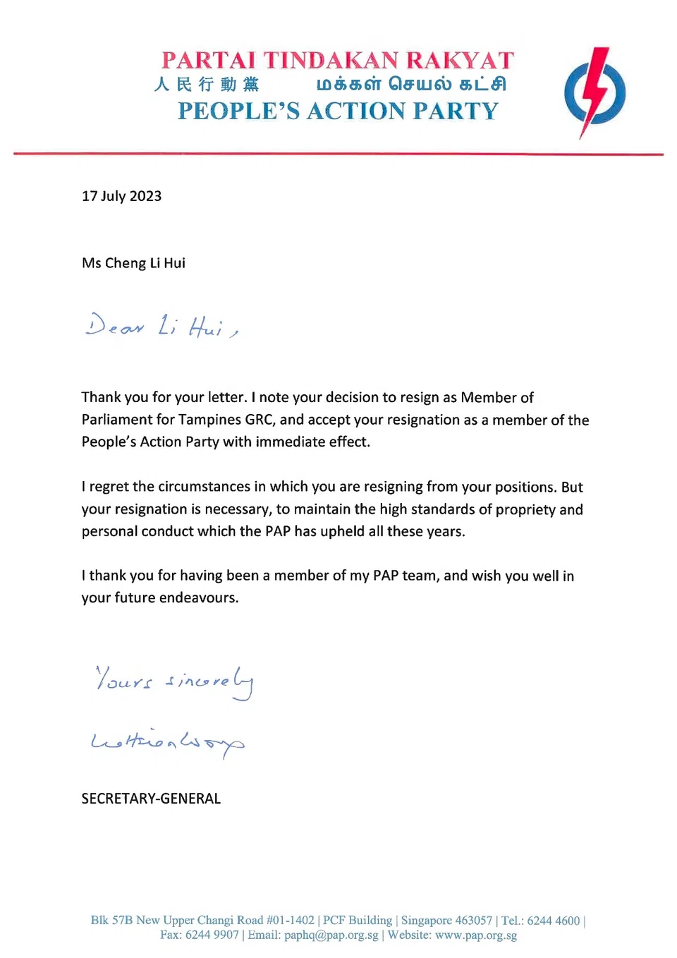 He was speaking at a press conference at the Istana on Monday afternoon following his announcement of Mr Tan's and Ms Cheng's resignations from the PAP.